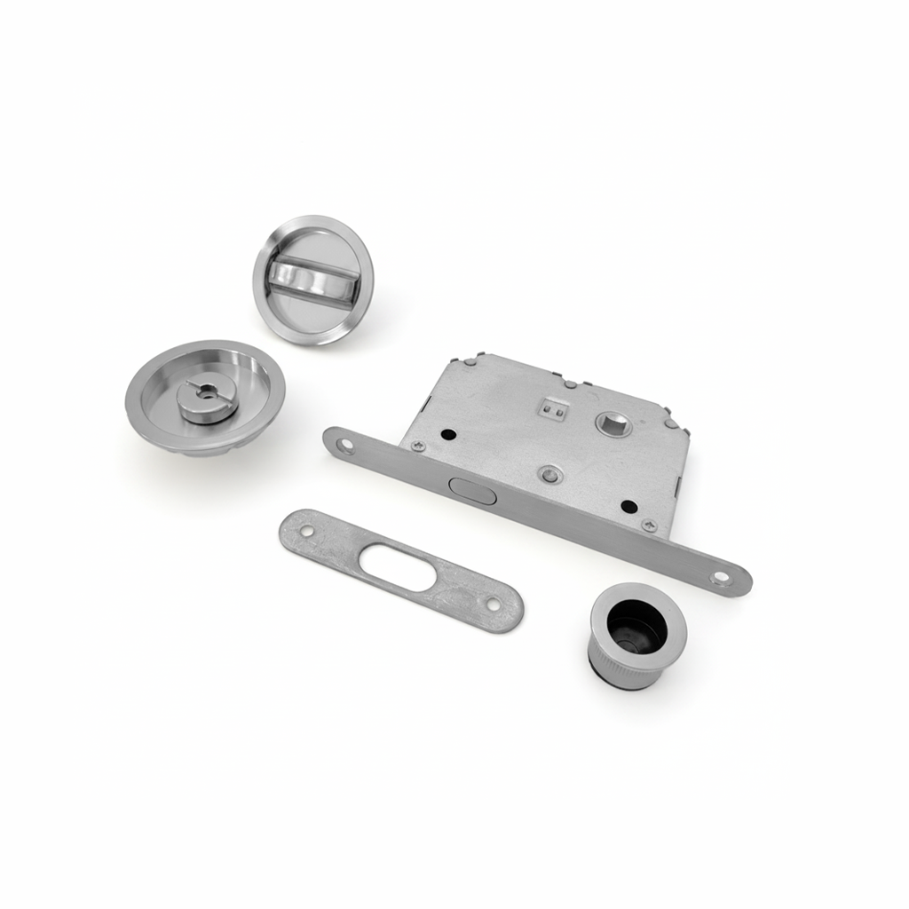 Com acabamento em inox, oferece elevada resistência à corrosão e desgaste, sendo adequado para utilização diária. Os puxadores redondos embutidos garantem um design discreto e moderno, ideal para ambientes contemporâneos. A fechadura integrada proporciona um fecho eficaz, sendo indicada para portas interiores de correr em habitações, escritórios ou espaços comerciais.