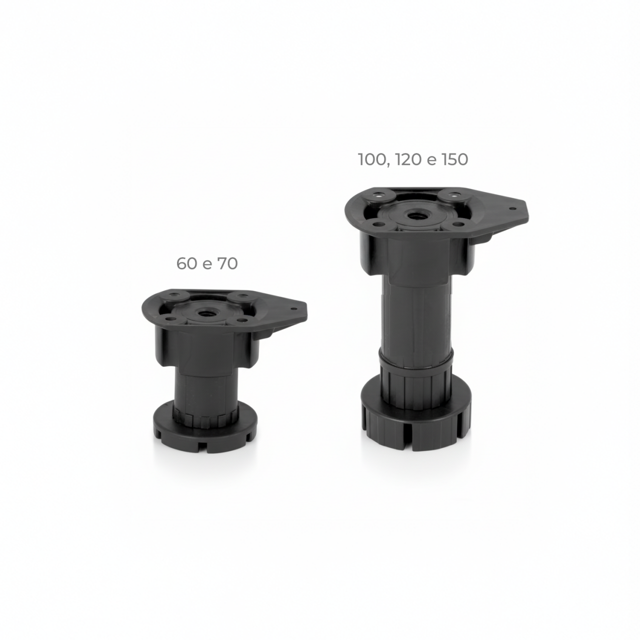 Os pés niveladores BONE para móveis de cozinha são concebidos para módulos inferiores com rodapé, oferecendo uma solução prática e resistente para elevar e nivelar armários de cozinha. Estes pés permitem elevar o móvel do pavimento, protegendo-o da humidade e facilitando a limpeza da zona inferior do mobiliário. Fabricados em plástico ABS preto de alta qualidade, estes pés proporcionam elevada resistência e durabilidade. A sua base antiderrapante aumenta a estabilidade do móvel e melhora a distribuição do peso, tornando-os ideais para cozinhas, móveis de casa de banho ou mobiliário técnico.
