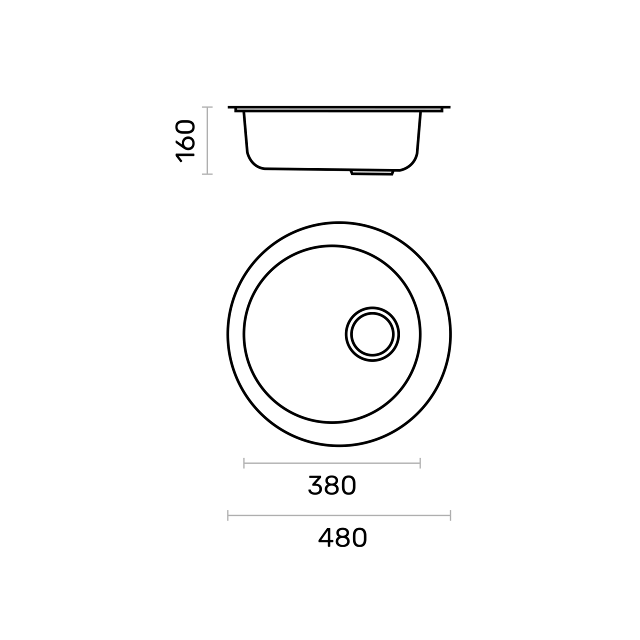 Medida da Total: Ø480 x 160 (P) | Medida da Pia: Ø380 | 1 | E5160 |