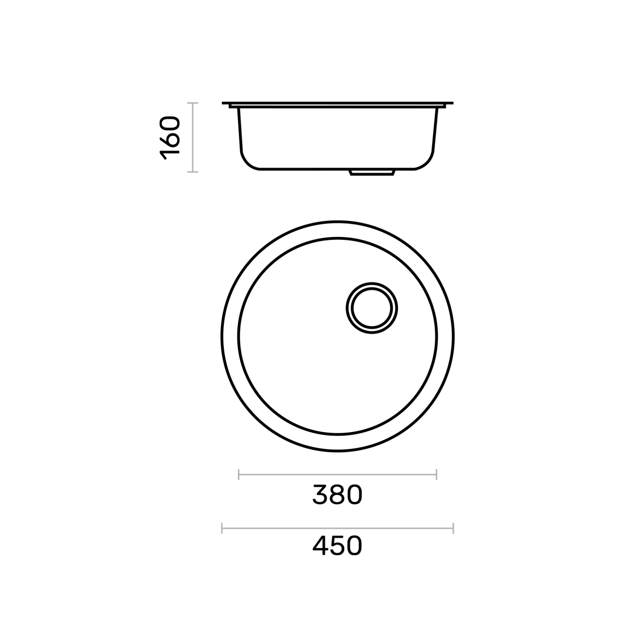 Medida | Medida da Total: Ø450 x 160 (P) | Medida da Pia: Ø380 | E8160 |