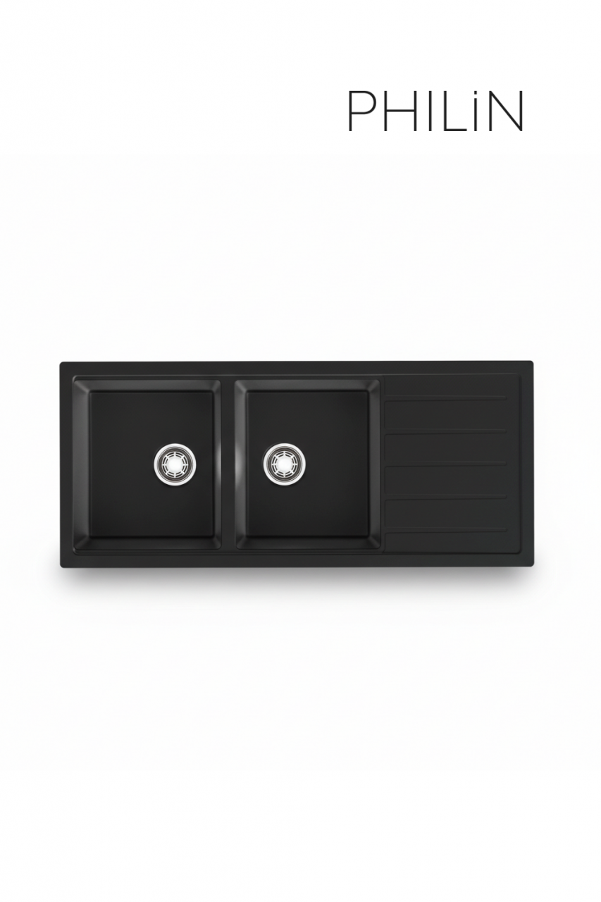 Os lava-louças da gama Sublime da marca PhiliN são pias de cozinha fabricadas em material composito, um material moderno e altamente resistente formado pela combinação de resinas sintéticas e agregados minerais, como quartzo ou granito, que conferem elevada durabilidade, resistência a riscos, impacto e mudanças de temperatura.