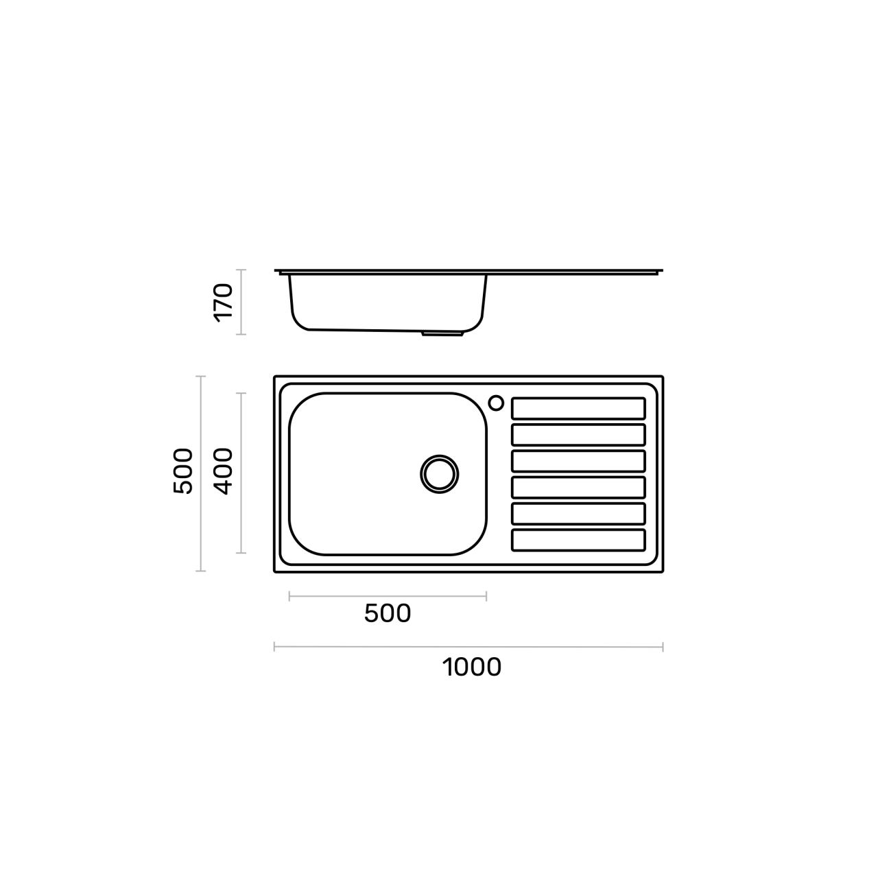 Medida total: 500 (A) x 1000 (L) x 170 (P) | Medida da pia: 400 (A) x 500 (L) | 1 | E42100 |