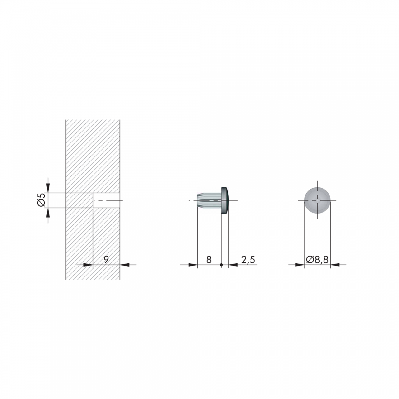 A instalação rápida realiza-se através de um furo pré-perfurado de Ø 5 mm, o que assegura uma aplicação simples e firme. A sua superfície externa lisa reduz o impacto direto entre a porta e a estrutura do armário, minimizando o ruído no momento do fecho.