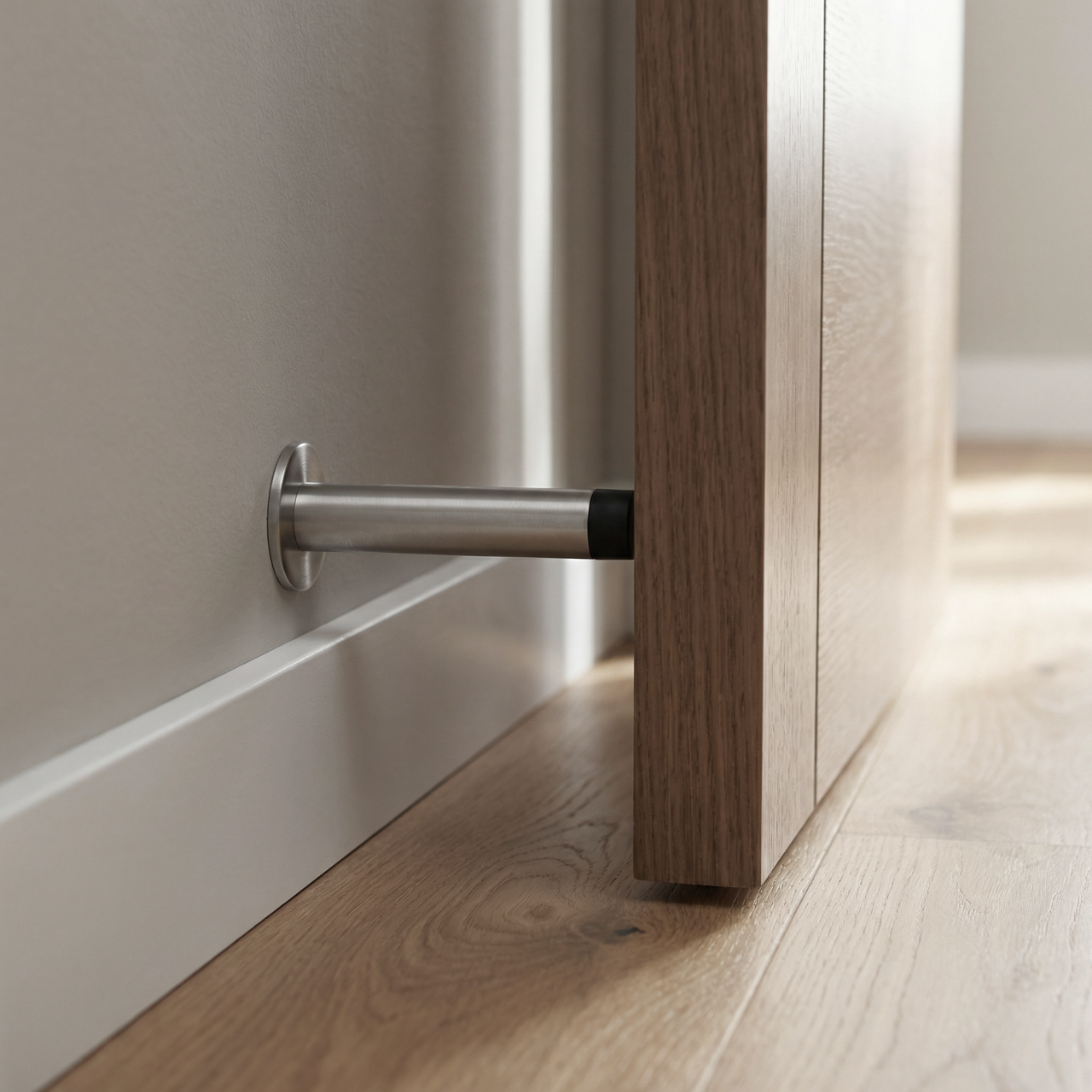 Este tipo de batente é especialmente útil em portas interiores onde os puxadores podem atingir a parede ao abrir, evitando danos na pintura, azulejos ou revestimentos. A instalação na parede permite posicionar o batente exatamente no ponto de impacto da porta, garantindo maior proteção do espaço. Graças ao seu design simples e funcional, o batente de parede é uma solução prática para casas, escritórios, hotéis ou espaços comerciais, oferecendo proteção eficaz para portas e paredes enquanto mantém um aspeto discreto e elegante.