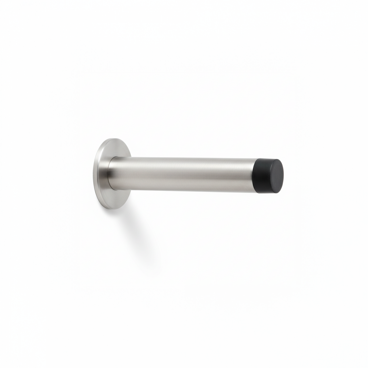 O Batente de Porta N.º5001 para parede é um acessório de ferragens concebido para evitar que a porta, ao abrir, bata diretamente na parede com o puxador ou com a própria estrutura da porta. Instalado diretamente na parede, este dispositivo funciona como limitador de abertura, protegendo tanto o puxador como a superfície da parede contra impactos e danos. Fabricado em aço inoxidável de elevada qualidade, o batente apresenta grande resistência ao desgaste, à corrosão e ao uso diário, sendo indicado para ambientes domésticos ou profissionais.
