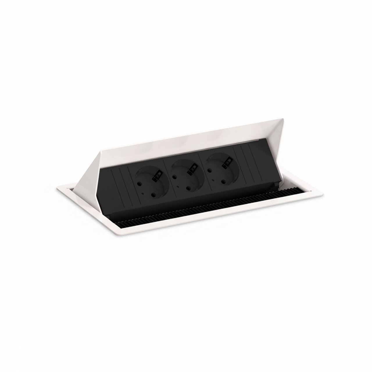 O sistema de fichas de tomada CONI da marca Bachmann é uma solução elétrica embutida que traz flexibilidade e acessibilidade livre à energia diretamente na superfície de trabalho, ideal para cozinhas, escritórios, bancadas técnicas ou áreas domésticas e profissionais que exigem organização e funcionalidade. O design torna possível que, quando fechada, a CONI e a superfície do móvel formem uma superfície uniforme e integrada e quando aberta, permite ligar as fichas elétricas e USB necessárias com conforto e segurança.