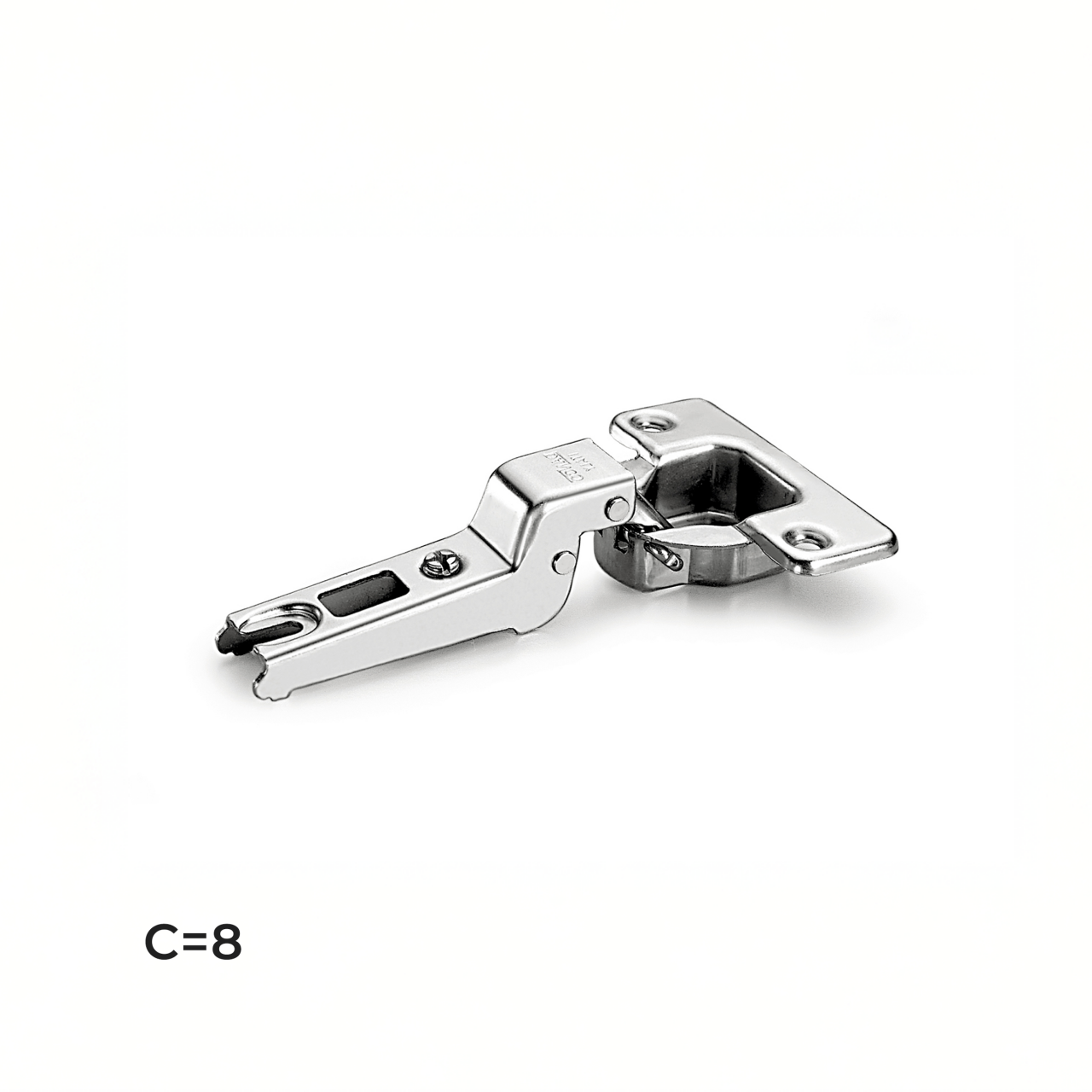 Está disponível em diferentes versões de curvatura (0 mm, 8 mm e 15 mm), permitindo adaptar a dobradiça ao tipo de sobreposição da porta do móvel. Esta versatilidade torna a dobradiça DANCO 850 adequada para diversos projetos de carpintaria e montagem de mobiliário. Para uma instalação completa, recomenda-se a utilização do calço DANCO B996 Slide-On H=0, compatível com o sistema de montagem desta dobradiça. O conjunto dobradiça + calço permite realizar ajustes precisos de posição da porta, garantindo alinhamento correto e acabamento profissional no mobiliário.