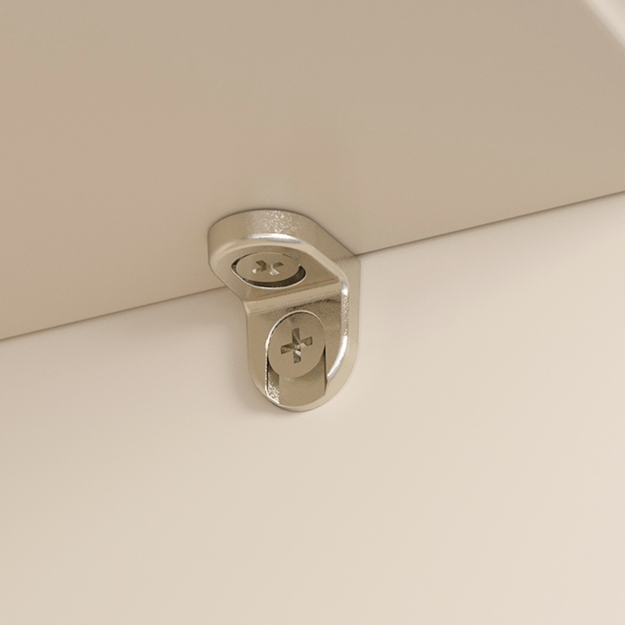 O Esquadro 2 Furos da Italiana Ferramenta é um suporte de encaixe de canto concebido para garantir uma junção perfeita, firme e segura entre painéis. É um elemento essencial para a montagem de móveis, assegurando estabilidade estrutural e alinhamento preciso.