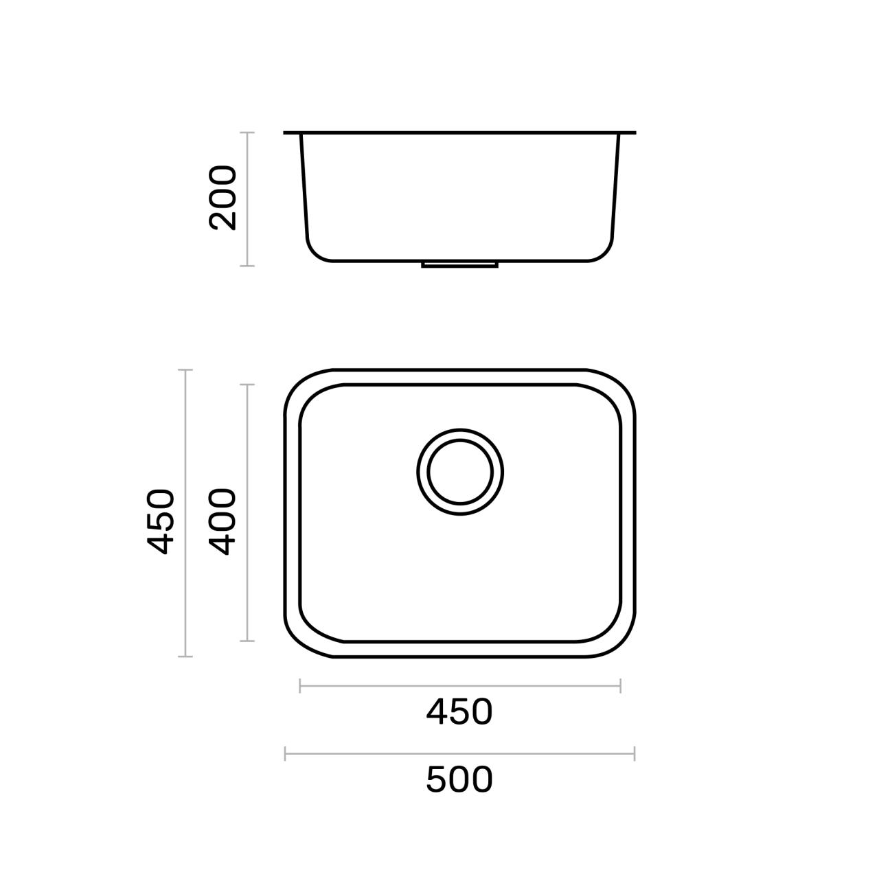 Medida total: 450 (A) x 500 (L) x 200 (P) | Medida da pia: 400 (A) x 450 (L) | 5 | LL70F16703 |