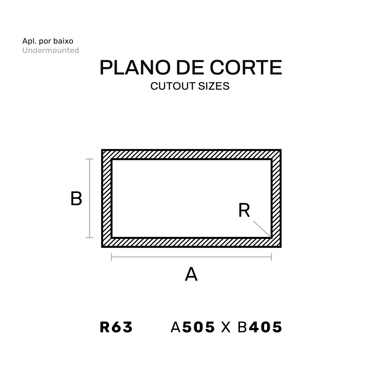Medida total: 450 (A) x 550 (L) x 200 (P) | Medida da pia: 400 (A) x 500 (L) | 5 | LL70F16704 |