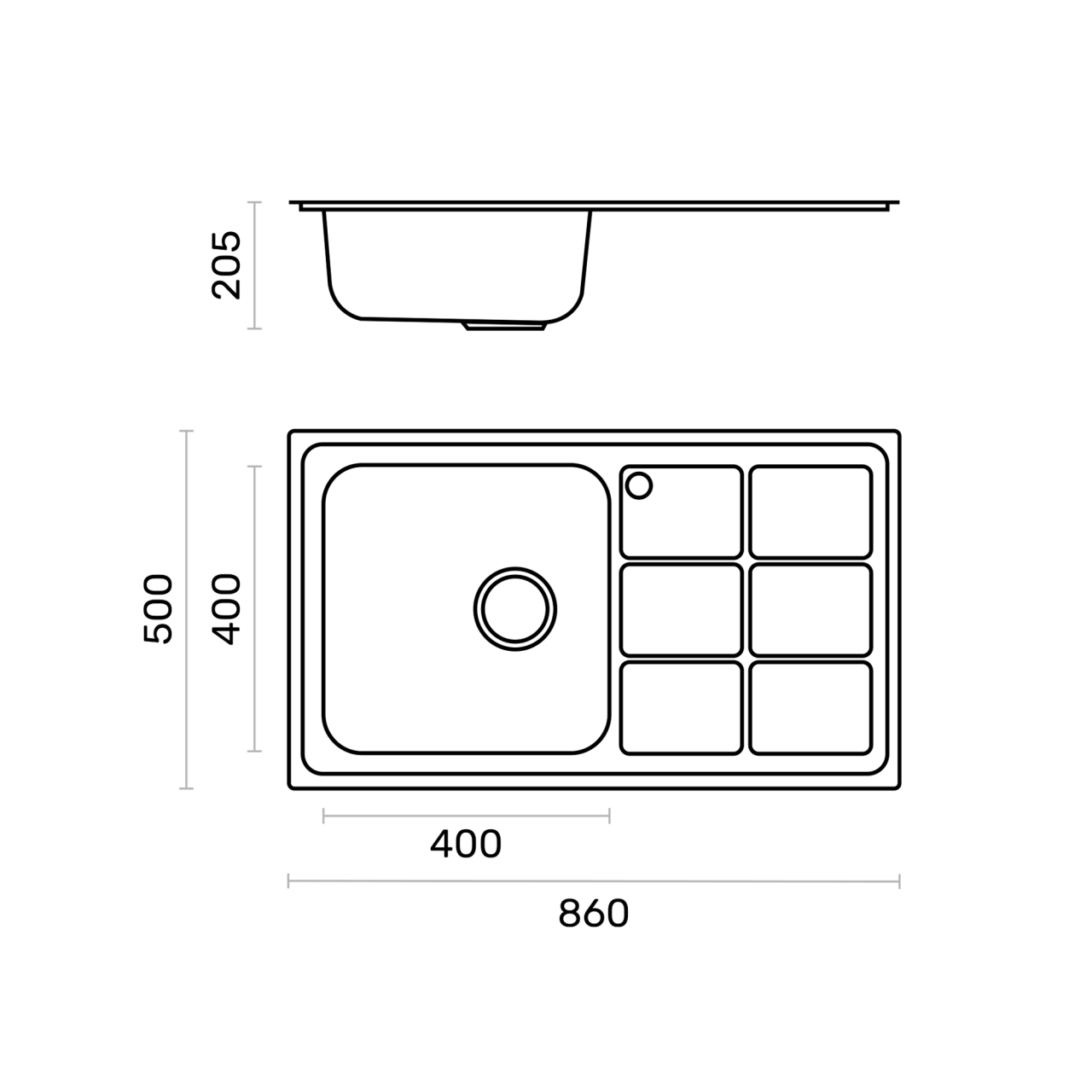 Medida total: 500 (A) x 860 (L) x 205 (P) | Medida da pia: 400 (A) x 400 (L) | 1 | LL70F16720 |
