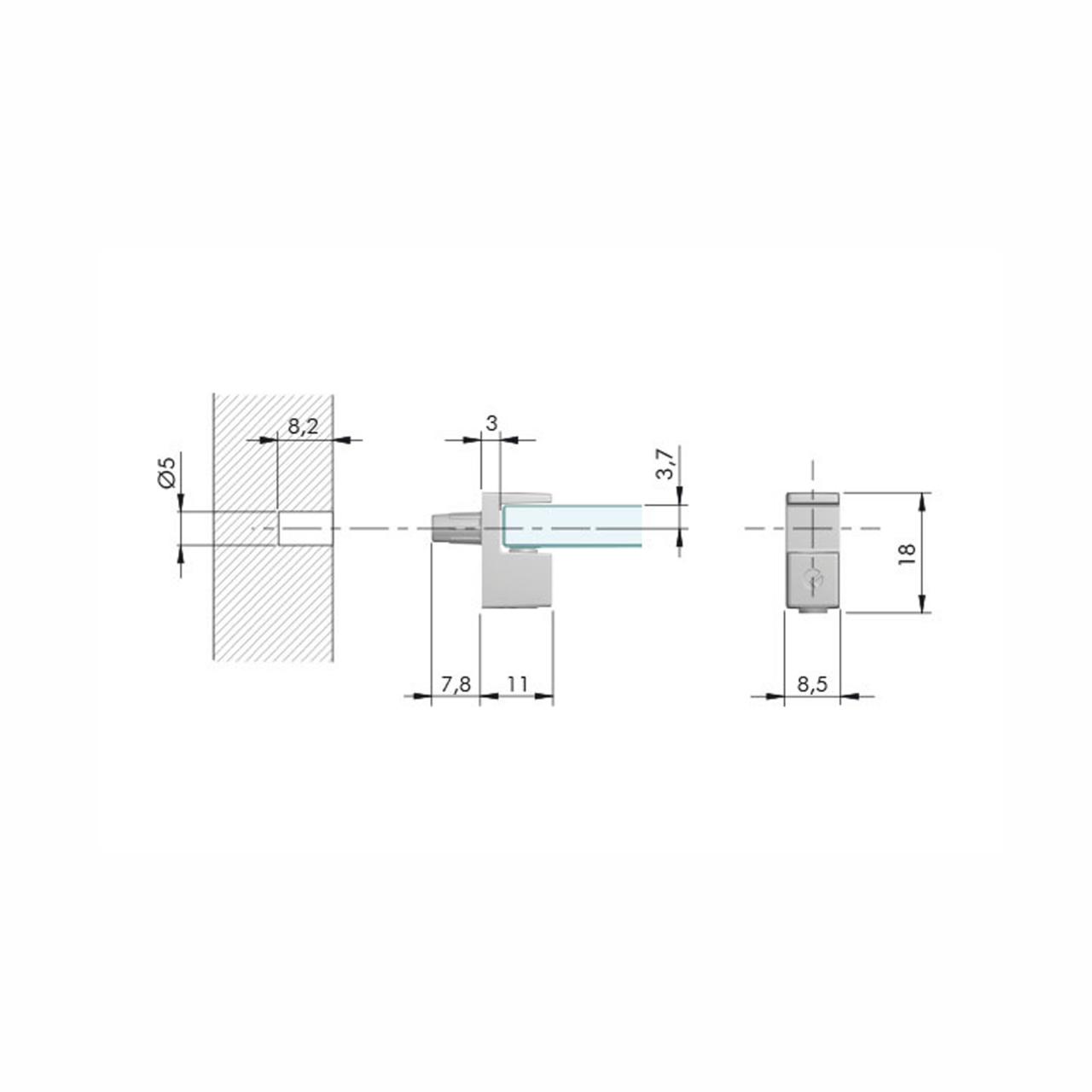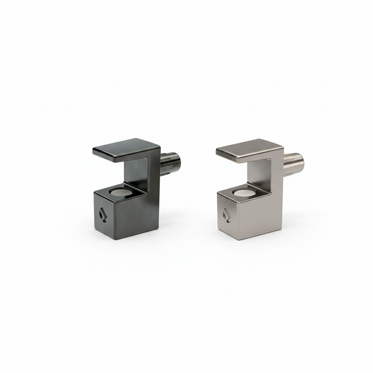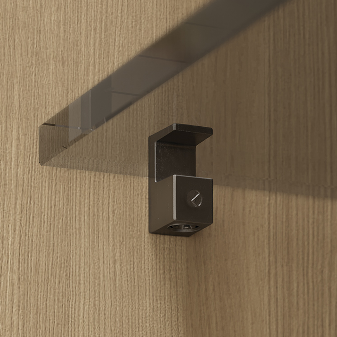 Equipado com uma inserção em plástico de engenharia na parte inferior, o suporte fixa perfeitamente a prateleira e reduz significativamente o risco de danos ou quebras no vidro. O sistema de travamento e destravamento é rápido e simples, facilitando ajustes ou remoções sempre que necessário. Disponível para prateleiras de vidro com espessura de 5–6 mm, o GRACE é a solução ideal para quem procura segurança, design e eficiência na fixação de prateleiras de vidro.