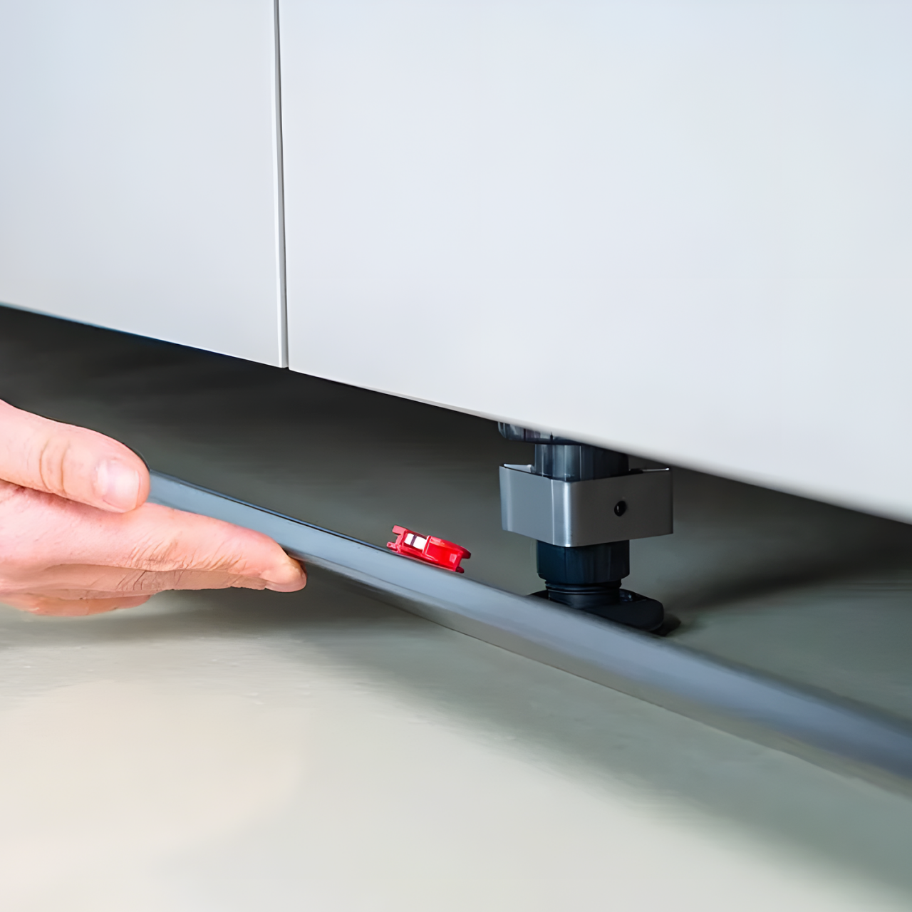O sistema BLINK distingue-se pelo seu mecanismo magnético exclusivo, que facilita a instalação e remoção do rodapé sempre que necessário. Graças a esta tecnologia, é possível remover o rodapé rapidamente para acesso à zona inferior dos móveis, permitindo uma limpeza mais fácil e melhor manutenção do espaço sob os armários de cozinha.