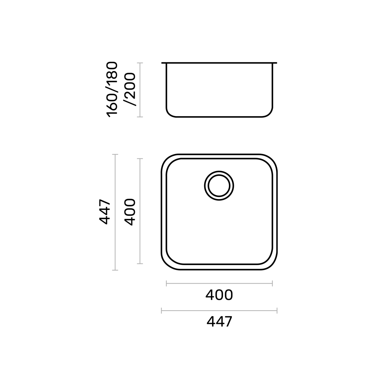 Medida total: 447 (A) x 447 (L) x 160 (P) | Medida da pia: 400 (A) x 400 (L) | 1 | E25004 |