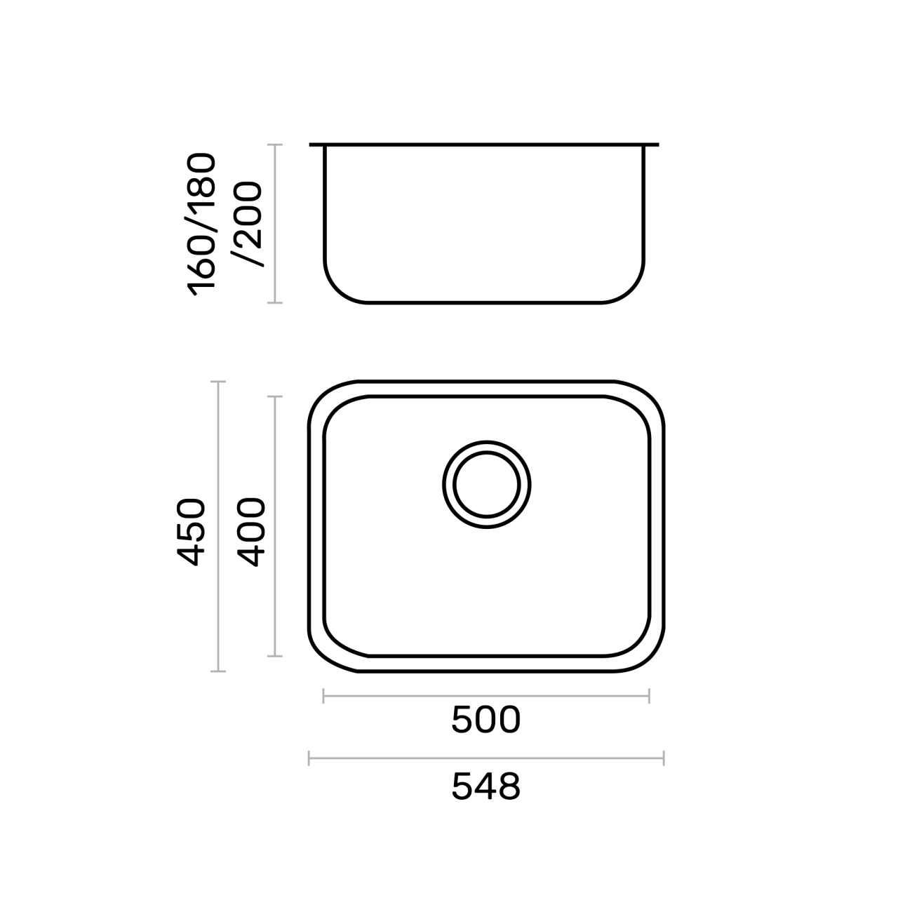 450 (A) x 548 (L) x 160 (P) | Medida da pia: 400 (A) x 500 (L) | 1 | E30004 |