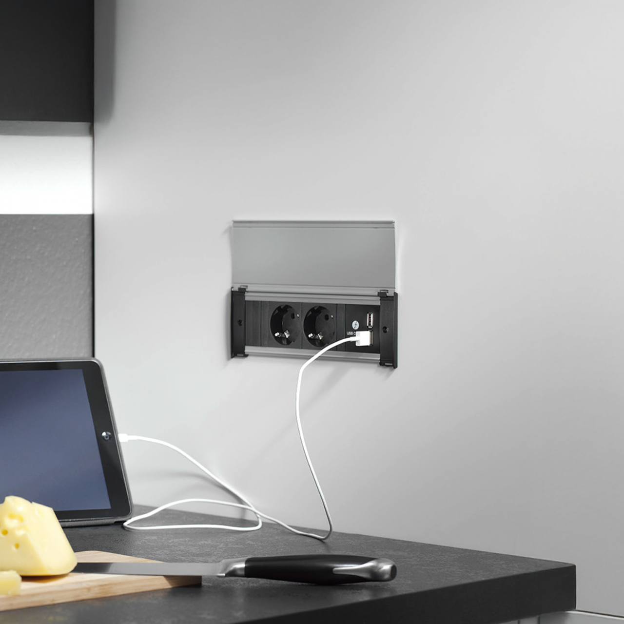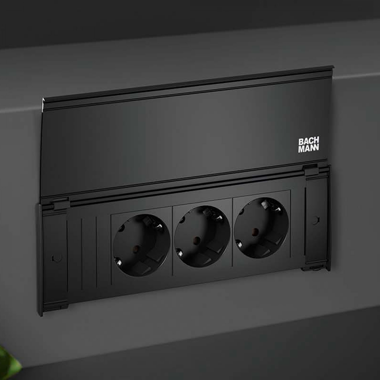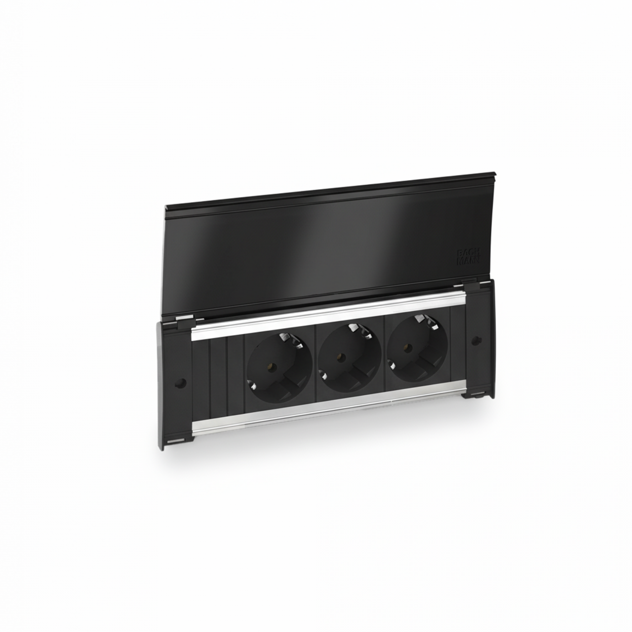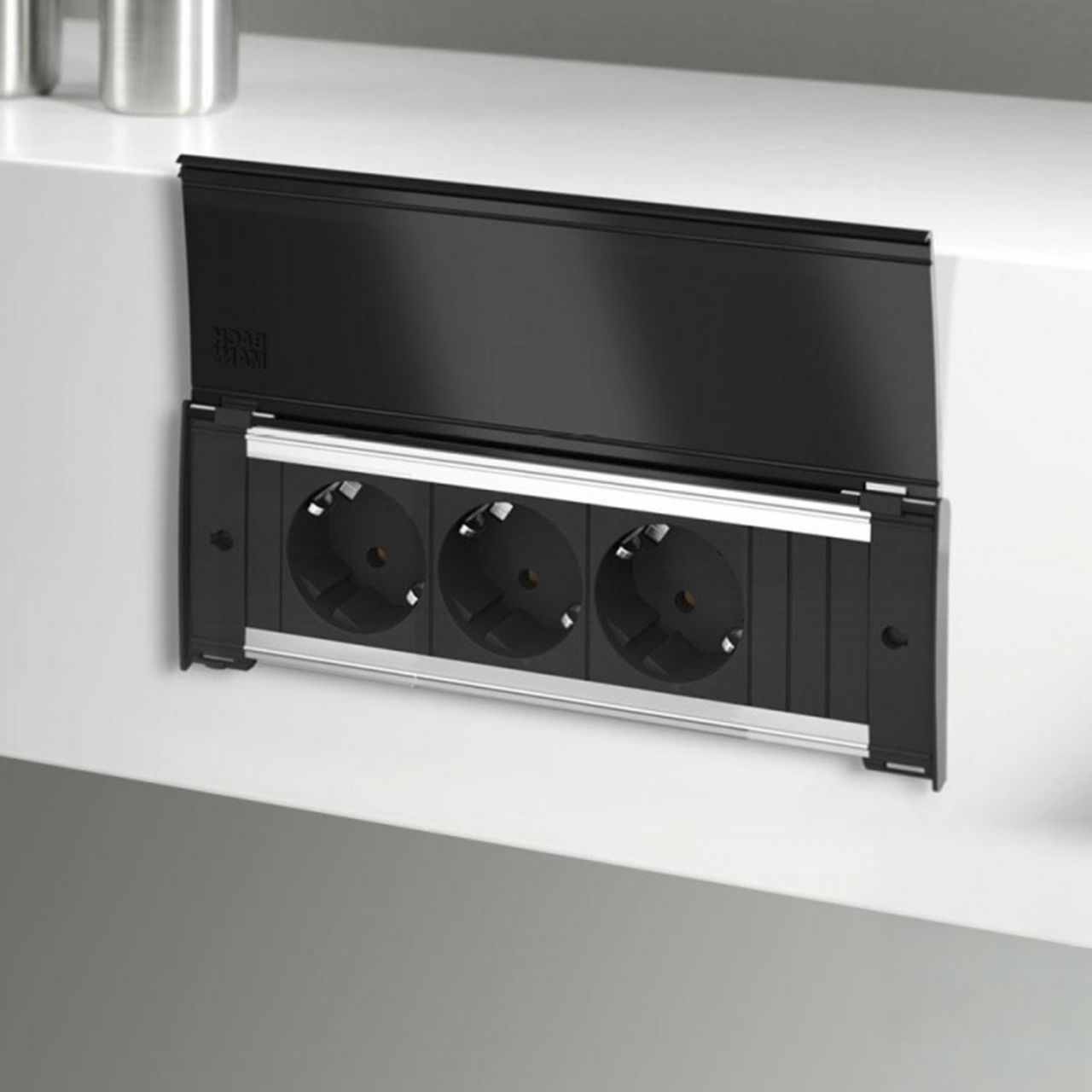 A régua de tomadas KAPSA da marca Bachmann KAPSA é uma solução de energia eletrificada orientada para o design moderno e economia de espaço, ideal para cozinhas, escritórios e outros ambientes domésticos ou profissionais. Concebida para integração embutida em tampos ou superfícies, o sistema KAPSA apresenta uma profundidade de montagem reduzida de aproximadamente 45 mm, facilitando a instalação mesmo em móveis com espaço interior limitado.
