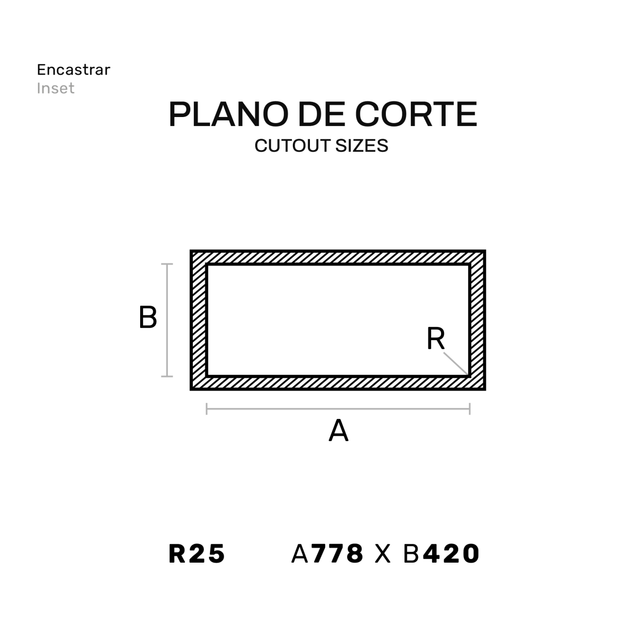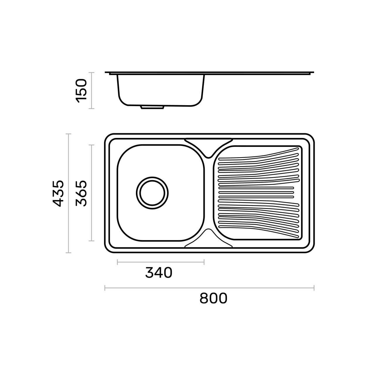 Medida total: 435 (A) x 800 (L) x 150 (P) | Medida da Pia: 365 (A) x 340 (L) | 1 | E1081 |