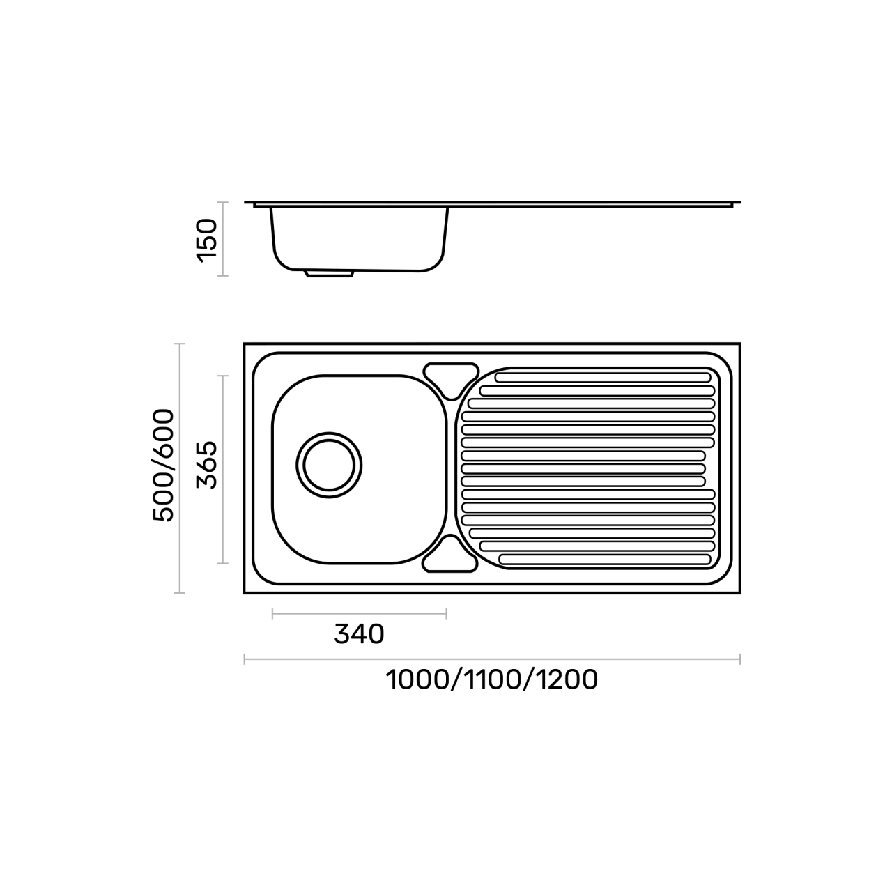 Medida total: 500 (A) x 1000 (L) x 150 (P)| Medida da pia: 365 (A) x 340 (L) | 1 | N1100NP |