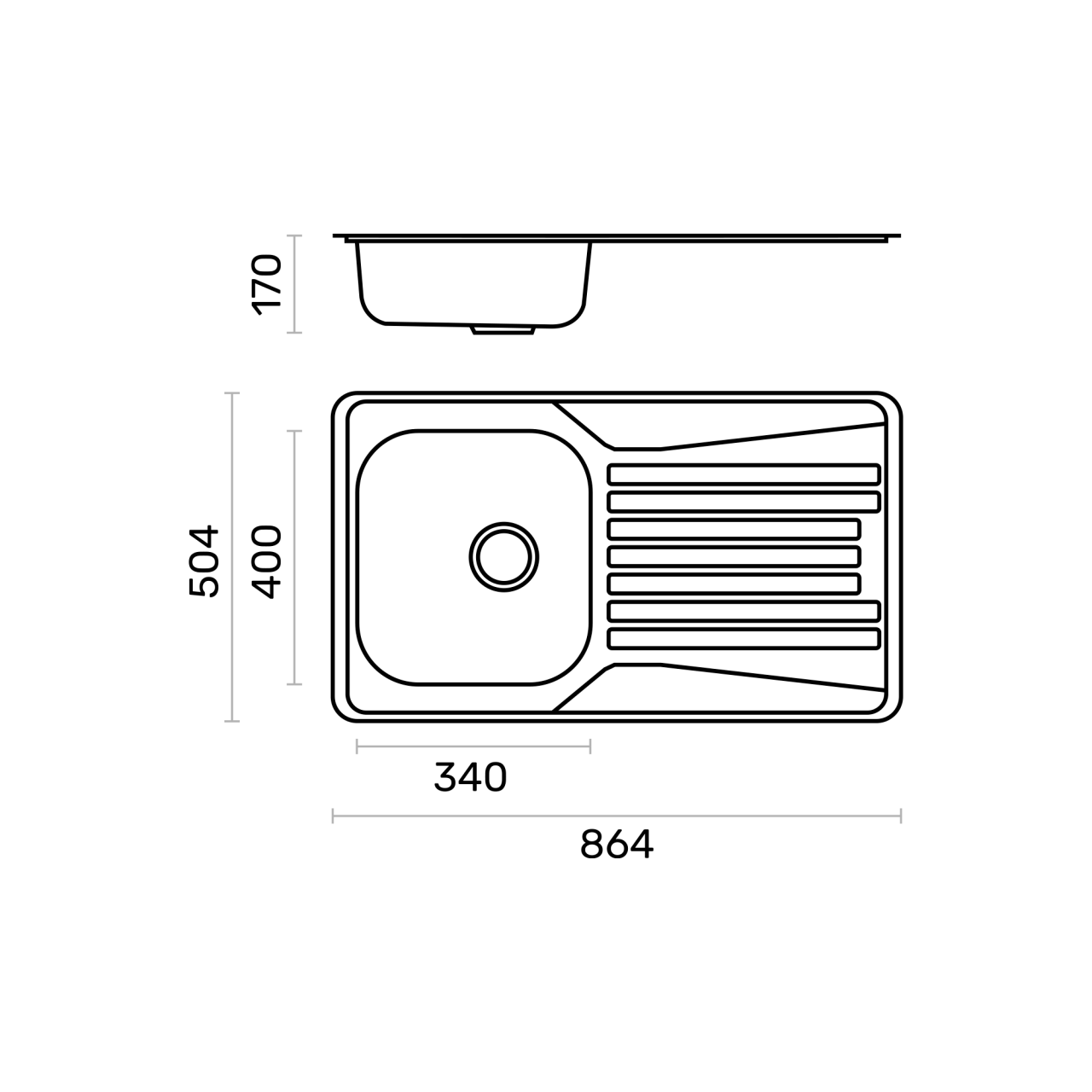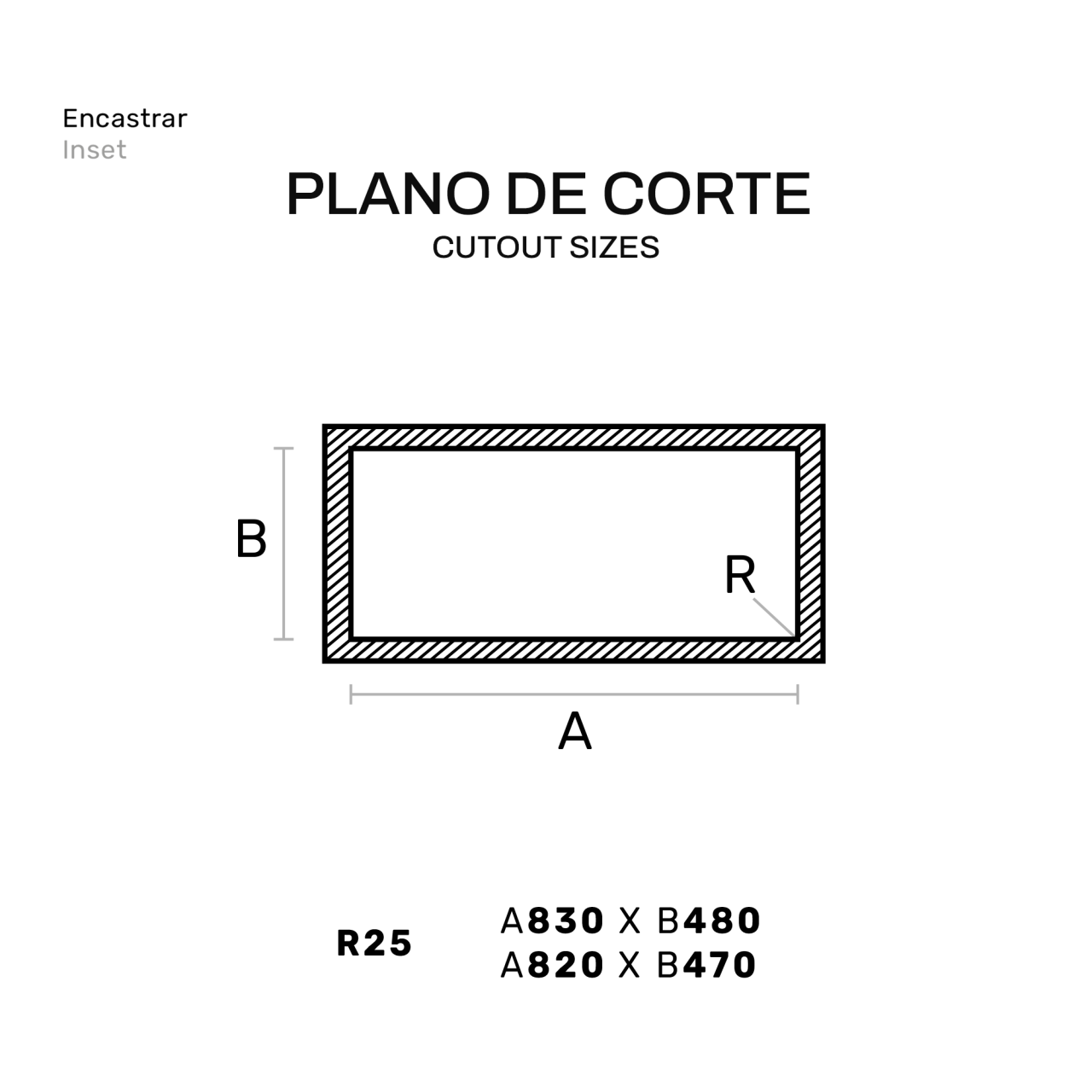 Medida total: 504 (A) x 864 (L) x 170 (P) | Medida da pia: 400 (A) x 340 (L) | 1 | E28001 |