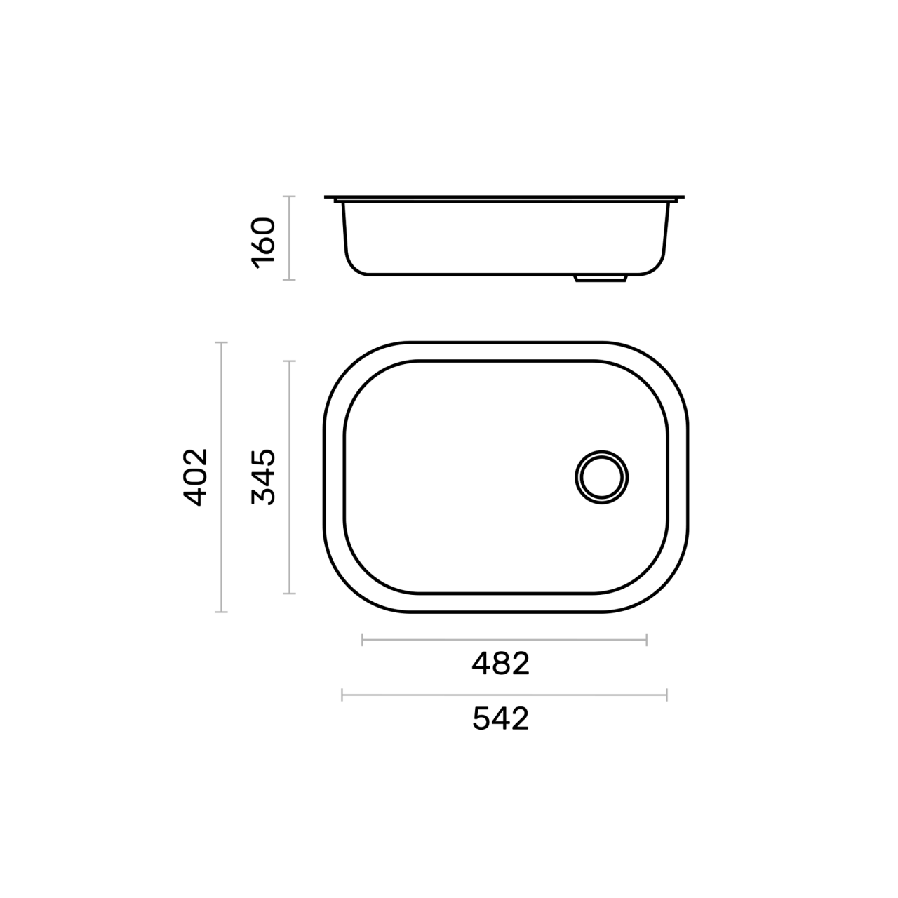 Medida total: 402 (A) x 542 (L) x 160 (P) | Medida da pia: 345 (A) x 482 (L) | 1 | U9054 |