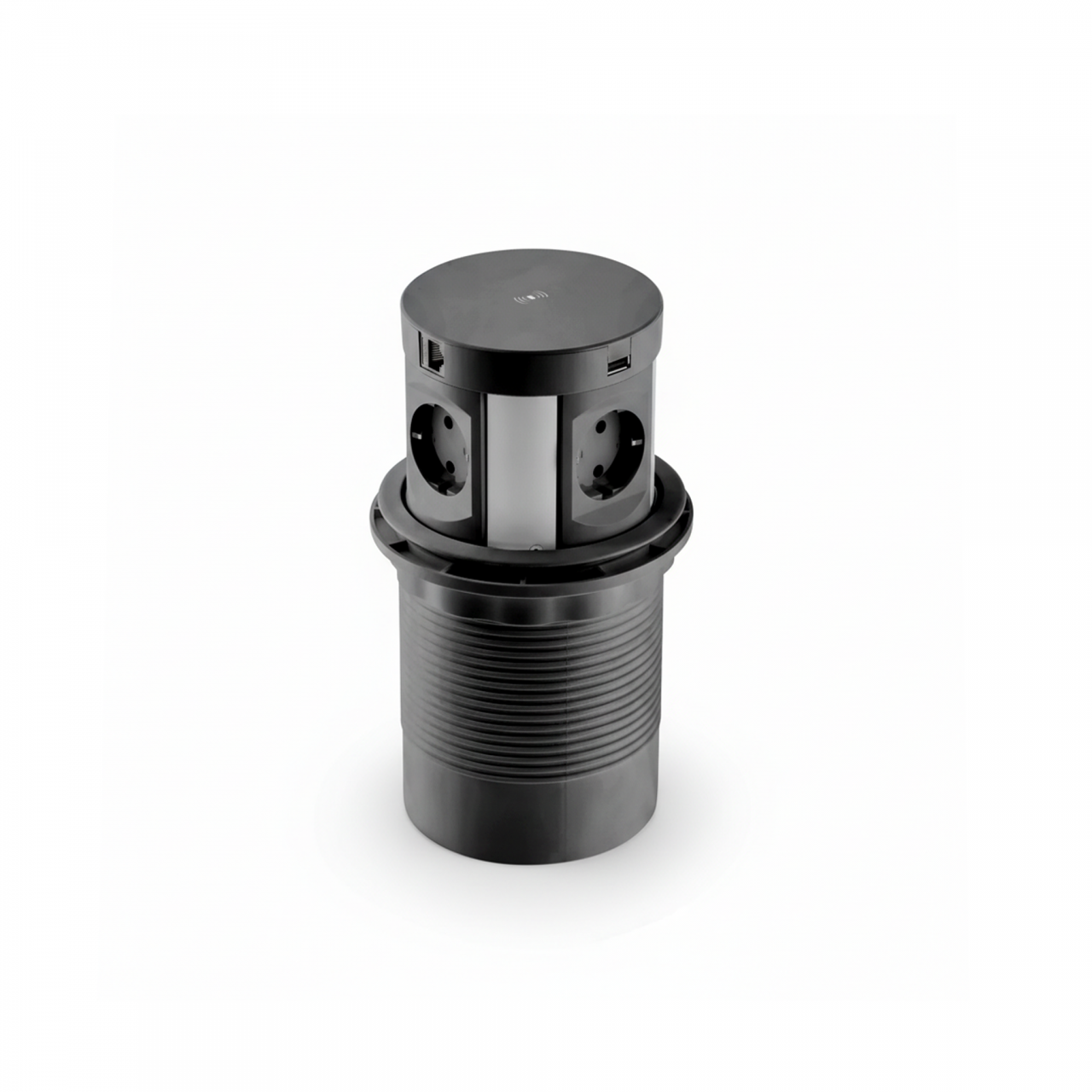 MAXI é uma solução elétrica embutida e elegante, ideal para escritórios, secretárias, bancadas de trabalho ou cozinhas modernas que exigem energia, dados e carregamento sem fios integrados. Esta torre de tomadas pop-up combina 4 tomadas padrão UE, 2 portas de carregamento USB A & C, 2 entradas de rede RJ45 e um sistema de carregamento wireless (WLC), proporcionando uma solução completa para alimentar e carregar dispositivos num espaço compacto e organizado.