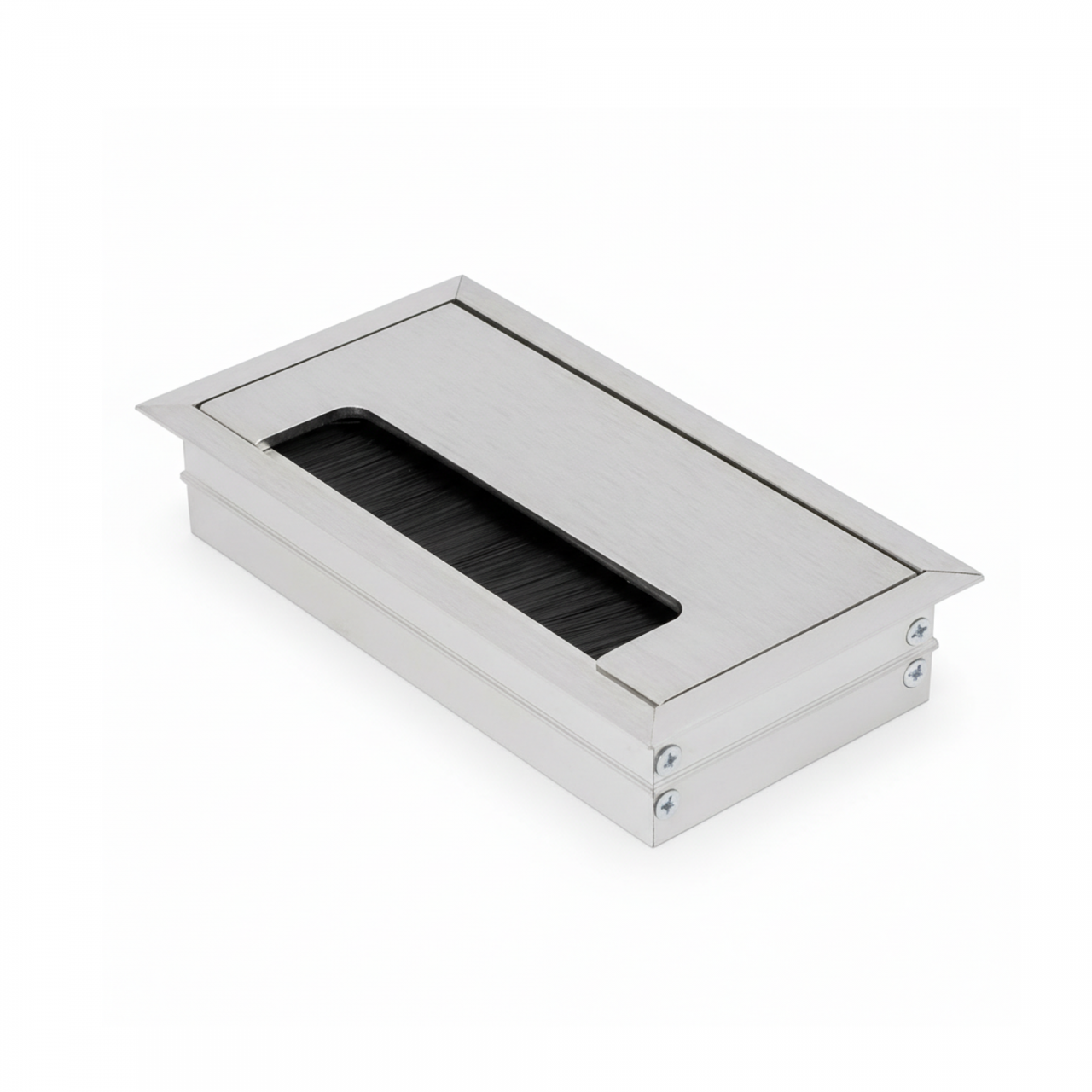 O Passa Cabos Square é um acessório prático e robusto projetado para permitir a passagem ordenada de cabos através da parte superior de mesas, secretárias, bancadas de trabalho ou móveis, mantendo o espaço organizado, limpo e funcional. Este tipo de grommet de cabos, normalmente instalado via furo quadrado no tampo, proporciona um acabamento elegante que elimina a desordem causada por fios soltos e permite que cabos de alimentação, dados ou USB passem facilmente pela superfície sem ficar emaranhados ou fora do lugar.