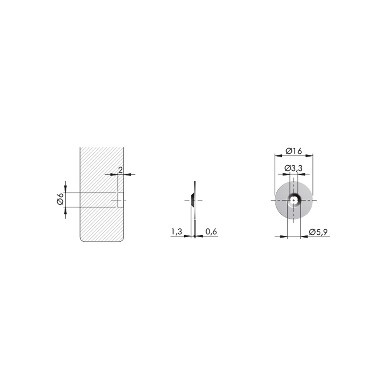 A Placa Redonda Ø16 mm é um acessório desenvolvido para utilização com sistemas Tic-Tac magnéticos ou para funcionar como batente de porta em móveis. Garante um contacto eficaz com o fecho magnético, assegurando um fecho firme, estável e preciso, contribuindo para o correto desempenho do sistema de abertura por pressão.