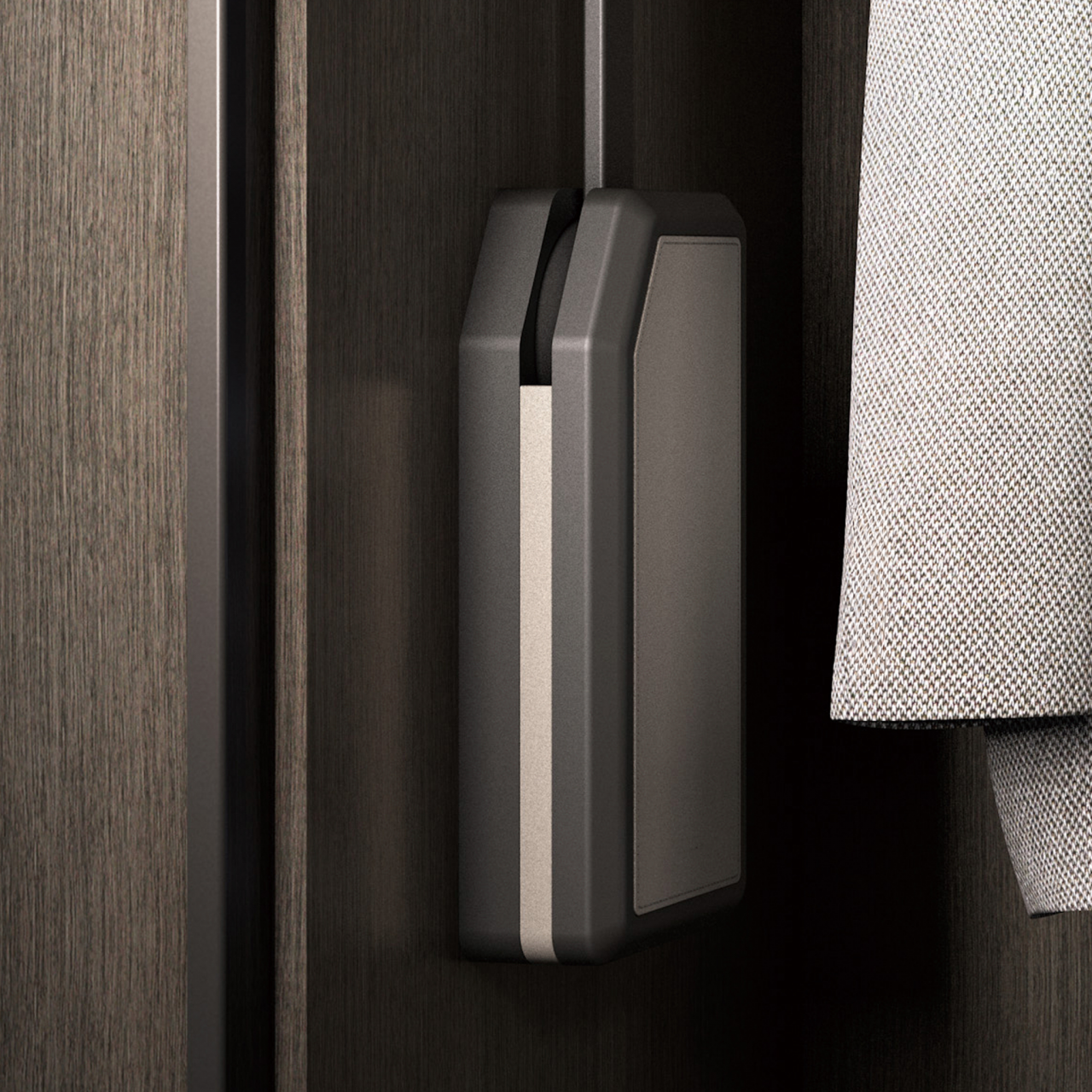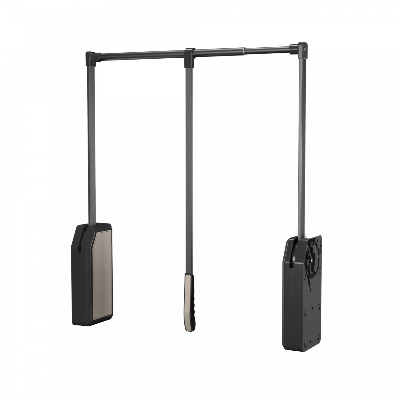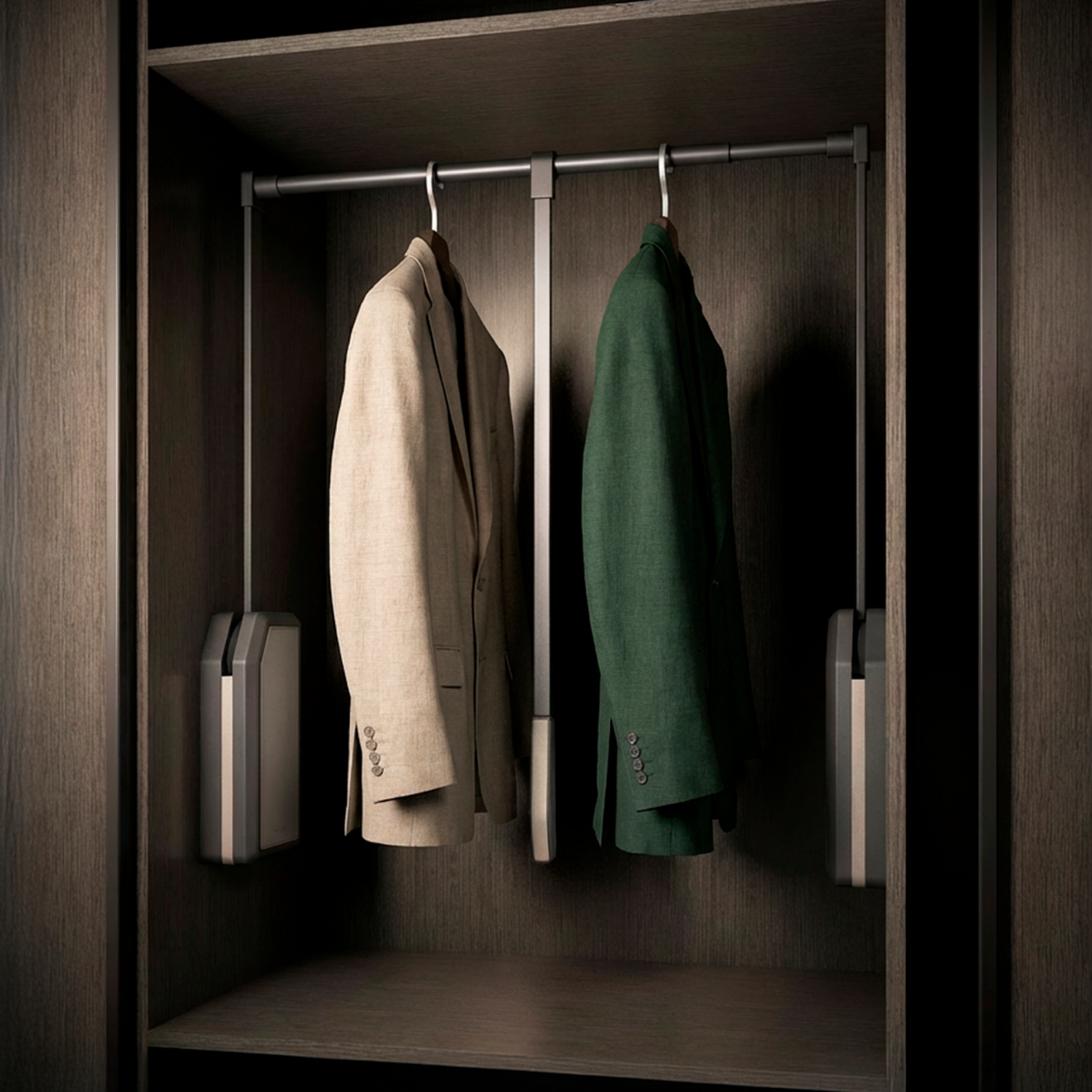 O Porta-Fatos Klosi para armários ou closet de quarto é um acessório premium concebido para garantir organização eficiente, elegância e máximo aproveitamento do espaço. Com um design moderno e um modelo contemporâneo, este sistema foi projetado para instalação na parte superior do armário, permitindo uma utilização inteligente da área mais elevada. Ideal para fatos, blusas, casacos e vestidos, o Porta-Fatos Klosi assegura uma disposição cuidada das peças, mantendo-as acessíveis e bem preservadas. As funções de fecho suave duplo, localizadas na parte superior e inferior, proporcionam conforto, segurança e proteção no uso diário.A estrutura em alumínio e aço na cor antracite garante resistência, durabilidade e um visual sofisticado. Integrado na gama Klosi, este acessório combina na perfeição com os restantes elementos da coleção, criando um interior de armário harmonioso e requintado. O Porta-Fatos Klosi representa a escolha ideal para quem procura funcionalidade, qualidade superior e estética premium no closet ou armário de quarto.