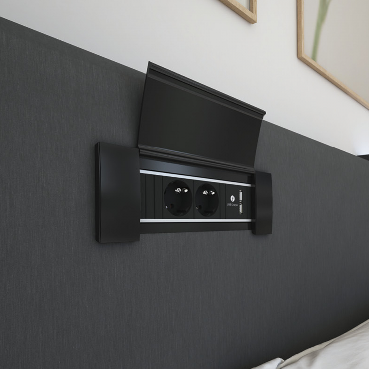 O sistema Power Frame da marca Bachmann é uma solução compacta e eficiente para ligações de energia e dados, concebida para estações de trabalho, bancadas de cozinha, escritórios ou outros ambientes que exigem acessibilidade e organização elétrica integradas. Com dimensões reduzidas e design contemporâneo, o Power Frame encaixa-se num módulo embutido que combina tomadas elétricas padrão com portas USB de carregamento, proporcionando versatilidade e funcionalidade sem ocupar espaço desnecessário.