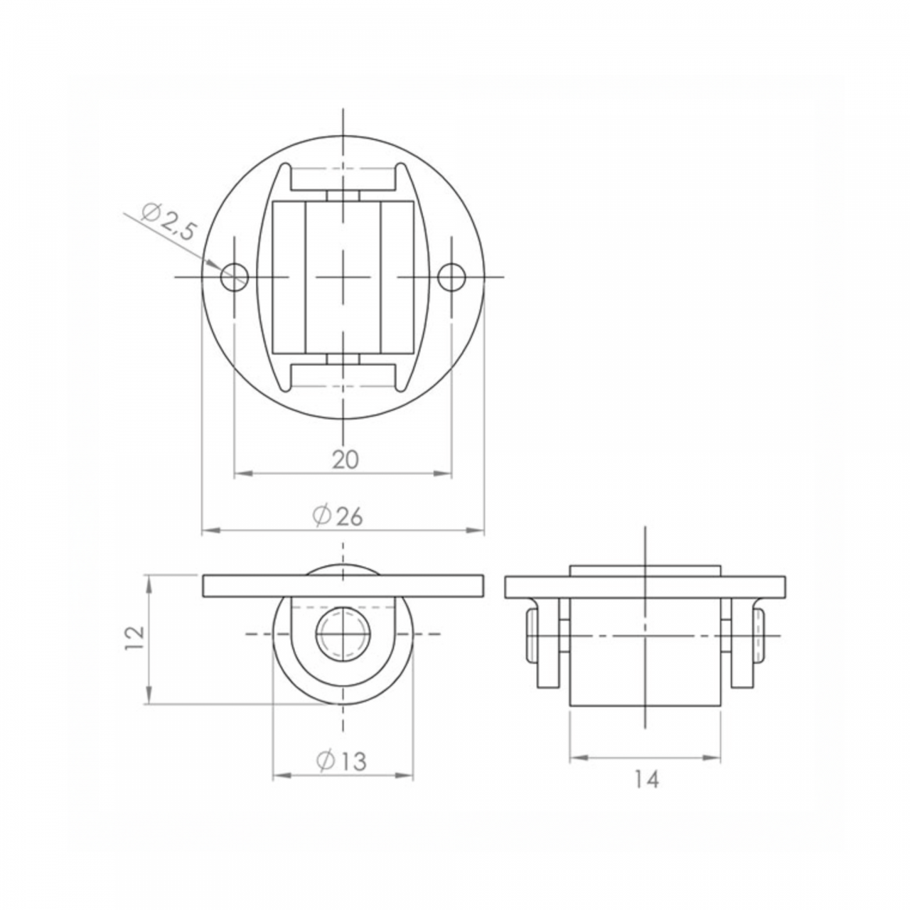 A roda ROB é uma solução de mobilidade embutida para móveis, projetada para permitir a movimentação fácil e suave de peças de mobiliário sem comprometer a estética. Com um diâmetro de roda de aproximadamente 13 mm e placa de montagem em aço zincado resistente à corrosão, esta roda invisível destaca-se pela sua construção durável em poliamida (PA), material altamente resistente à abrasão e a impactos mecânicos.