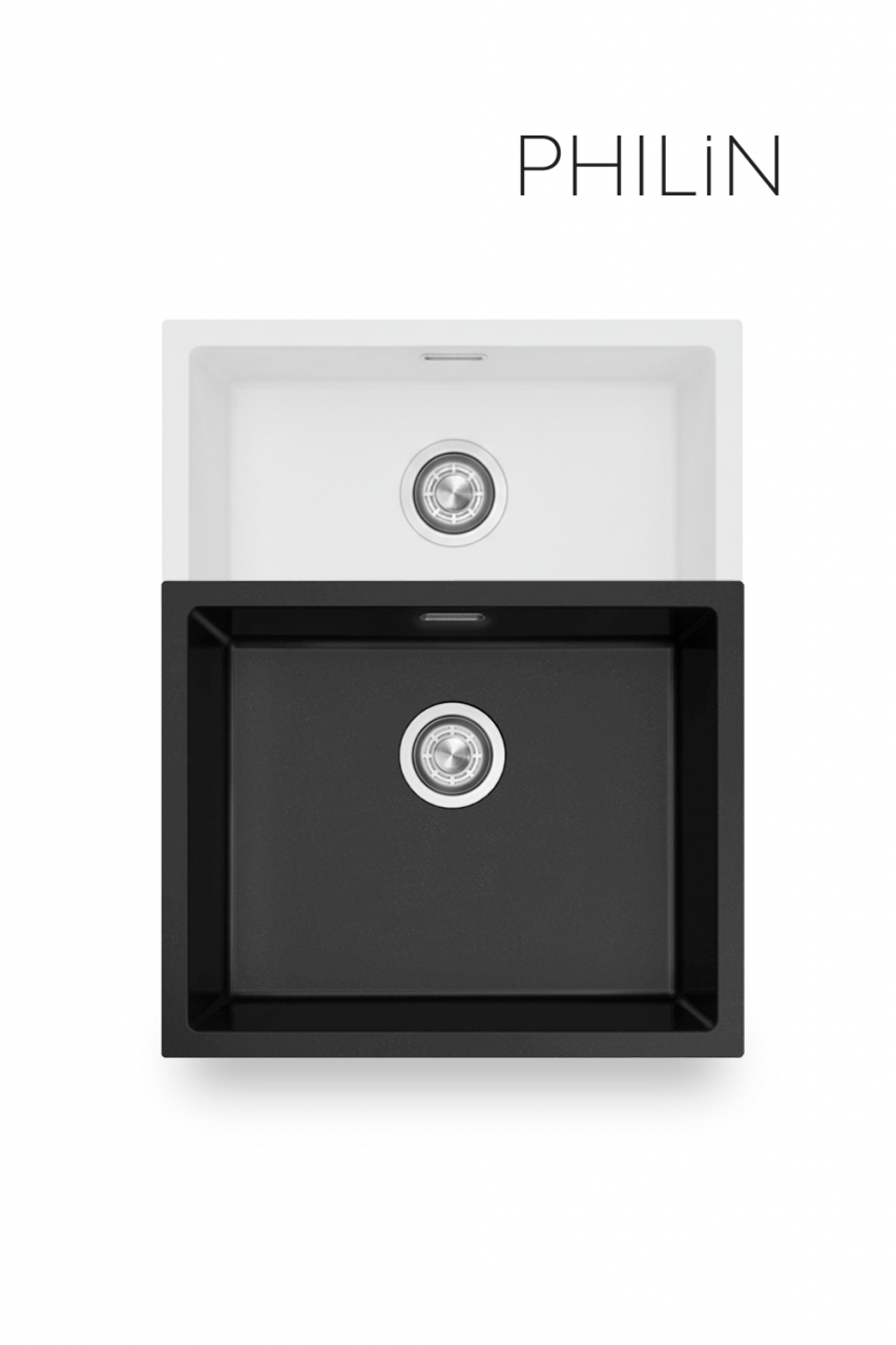 Os lava-louças da gama Sublime da marca PhiliN são pias de cozinha fabricadas em material composito, um material moderno e altamente resistente formado pela combinação de resinas sintéticas e agregados minerais, como quartzo ou granito, que conferem elevada durabilidade, resistência a riscos, impacto e mudanças de temperatura.