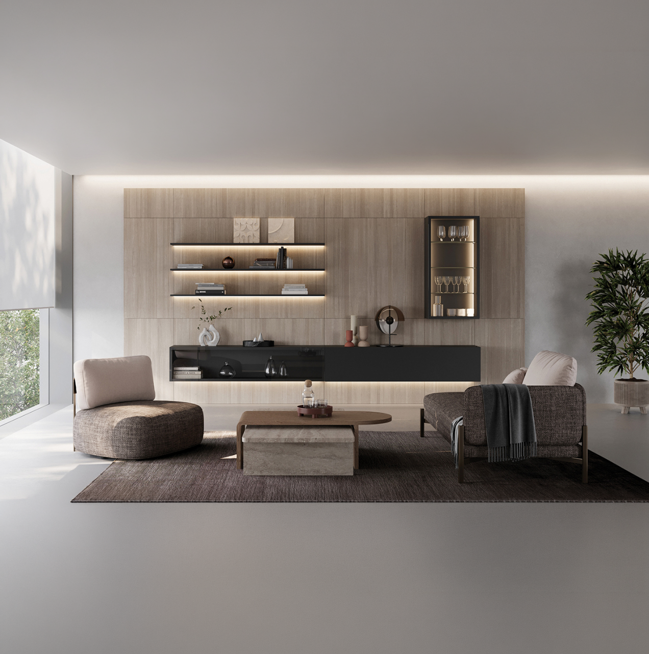 O kit SYMETRA ONE é um sistema de fixação e nivelamento desenvolvido para painéis de mobiliário, ideal para aplicações modernas e funcionais em ambientes interiores. Esta versão é indicada para painéis com largura superior a 1300 mm e até 1200 mm de altura, sendo perfeita para composições compactas como móveis de entrada, painéis decorativos ou módulos de TV de parede. Projetado para estruturas com profundidade reduzida, permite a montagem direta de prateleiras e pequenos módulos sobre o painel, garantindo estabilidade, alinhamento preciso e facilidade de instalação. Sistemas como o SYMETRA ONE são especialmente concebidos para módulos leves e de baixa profundidade, montados diretamente no painel.